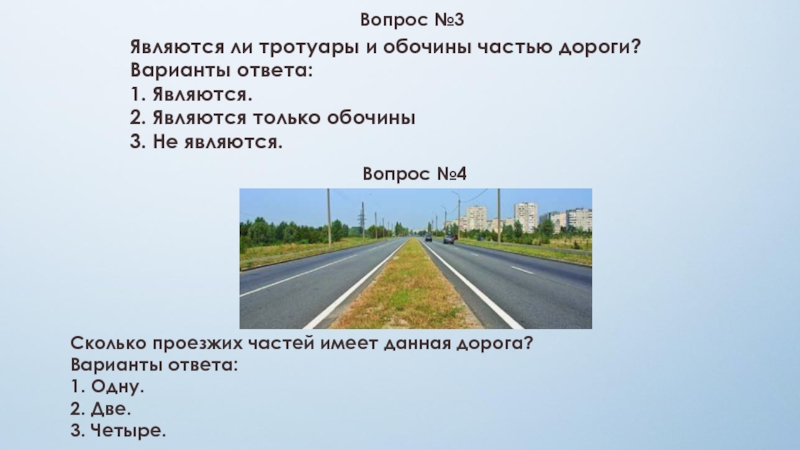 1. Проезжая часть; 2. Полоса движения; 3. Разделительная полоса; 4. Тротуар.