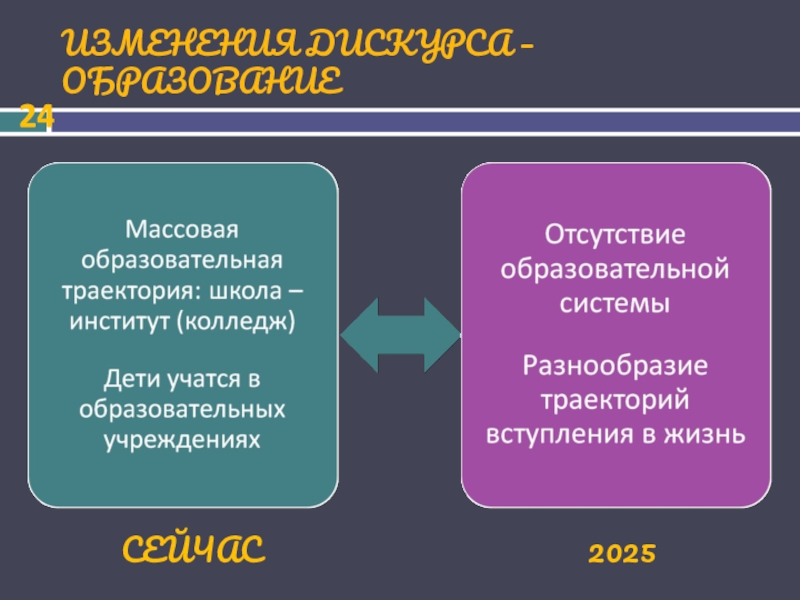 Слайд 24ИЗМЕНЕНИЯ ДИСКУРСА – ОБРАЗОВАНИЕ