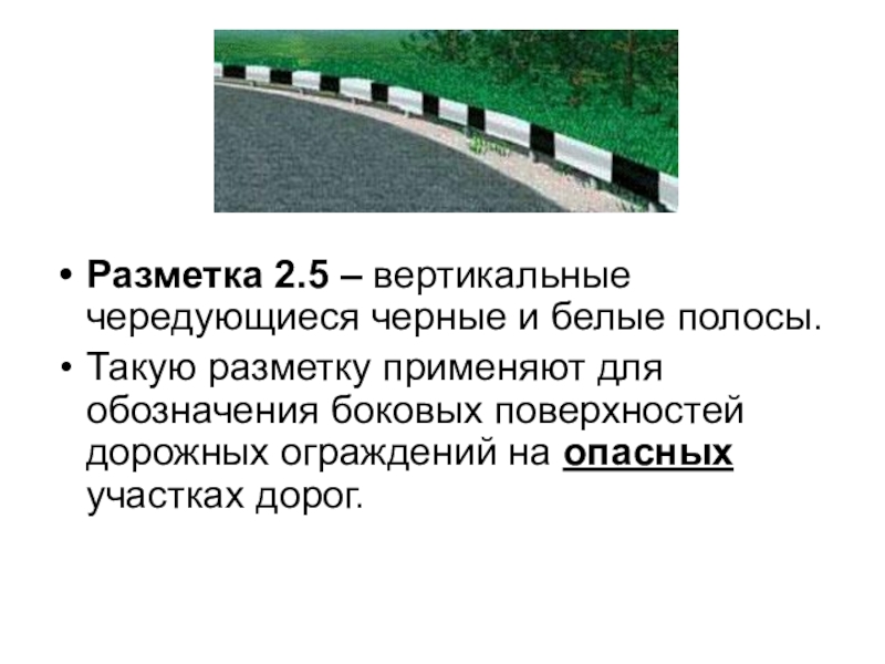 Разметка 2.5 – вертикальные чередующиеся черные и белые полосы.