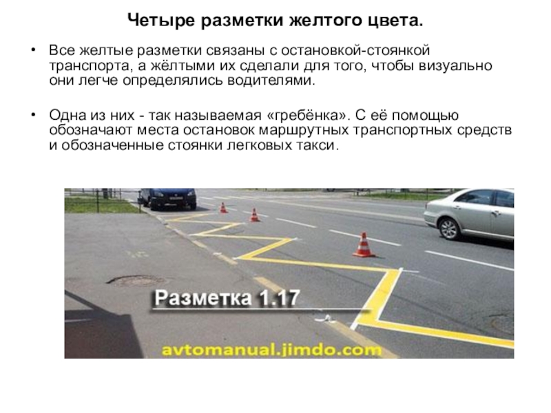 Одна из них - так называемая «гребёнка». С её помощью обозначают места остановок маршрутных транспортных средств и обозначенные стоянки легковых такси.