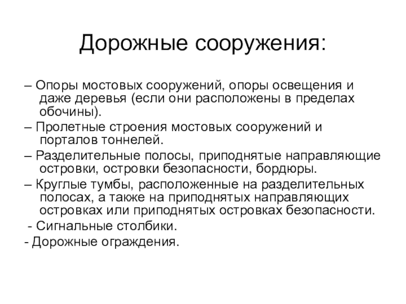 – Разделительные полосы, приподнятые направляющие островки, островки безопасности, бордюры.