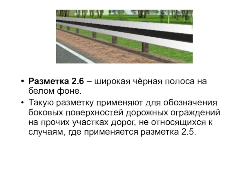 Слайд 29Разметка 2.6 – широкая чёрная полоса на белом фоне.
