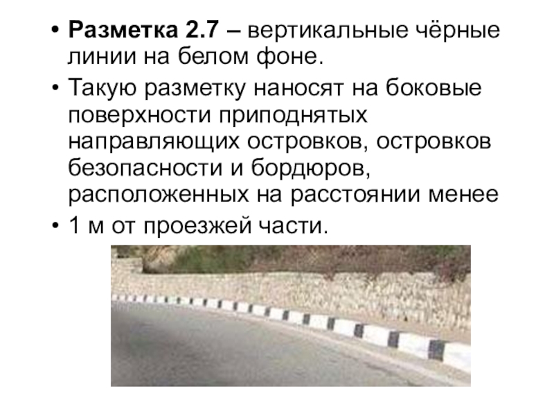 Слайд 30Разметка 2.7 – вертикальные чёрные линии на белом фоне.