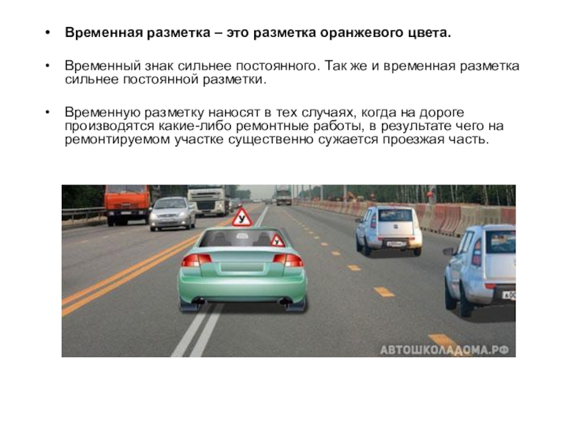 Слайд 20Временная разметка – это разметка оранжевого цвета.