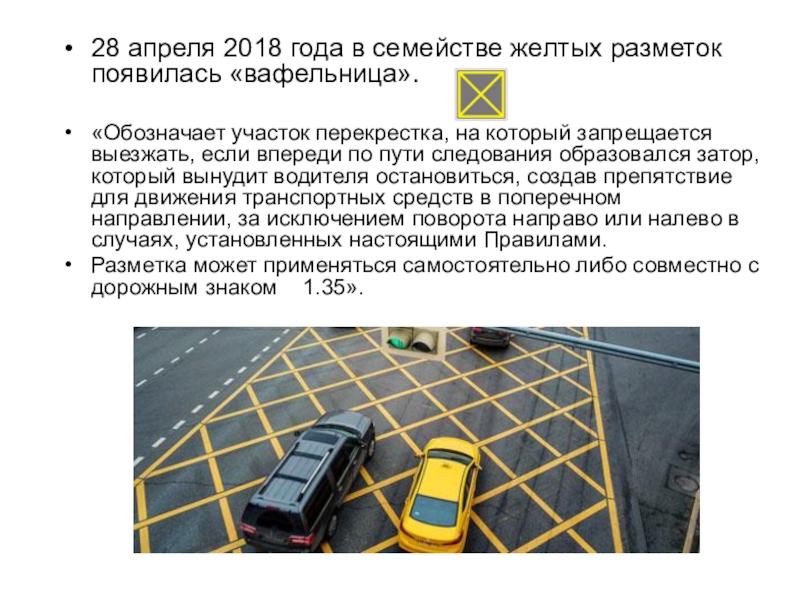 Слайд 1828 апреля 2018 года в семействе желтых разметок появилась «вафельница».