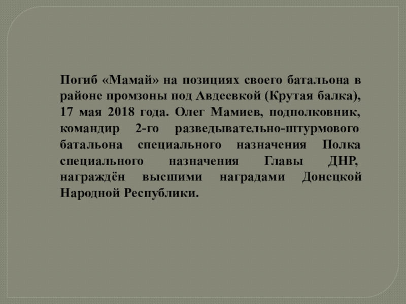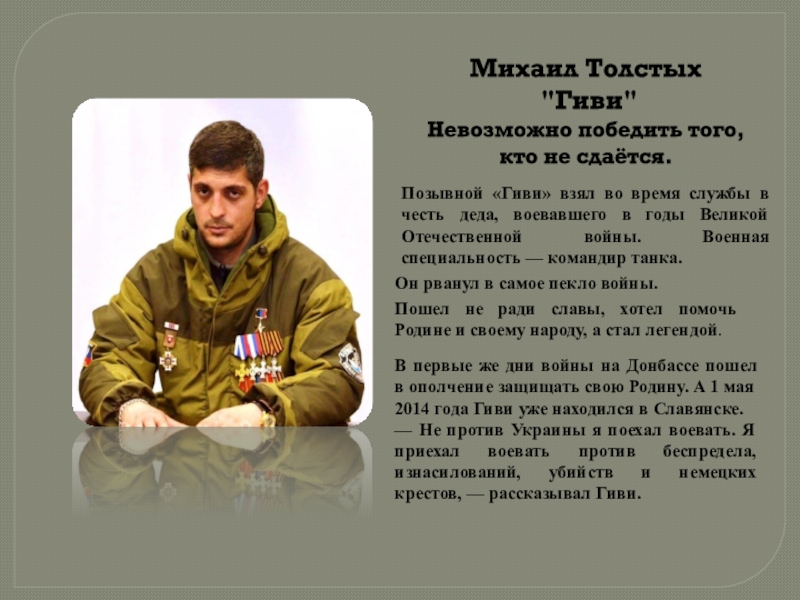8 февраля в 6 утра Толстых погиб в своем рабочем кабинете. Его не сломали и не победили. До последней секунды своей жизни Гиви остался преданным Родине.