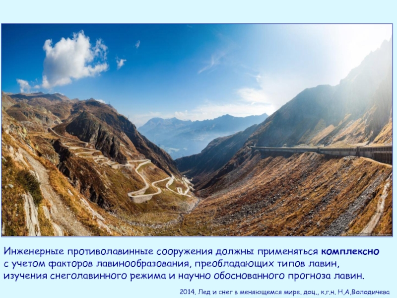 Слайд 39Система противолавинных сооружений для защиты селения и автодороги от лавин,