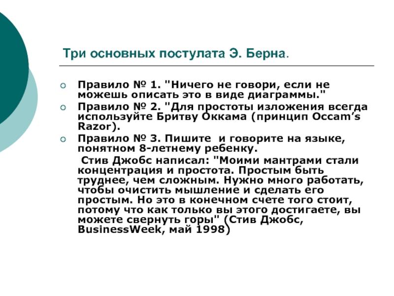 Слайд 3Три основных постулата Э. Берна.