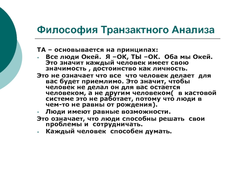 Слайд 4Философия Транзактного Анализа