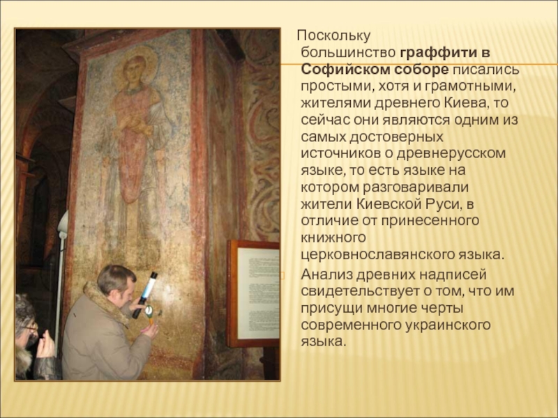 Слайд 50 Поскольку большинство граффити в Софийском соборе писались простыми, хотя