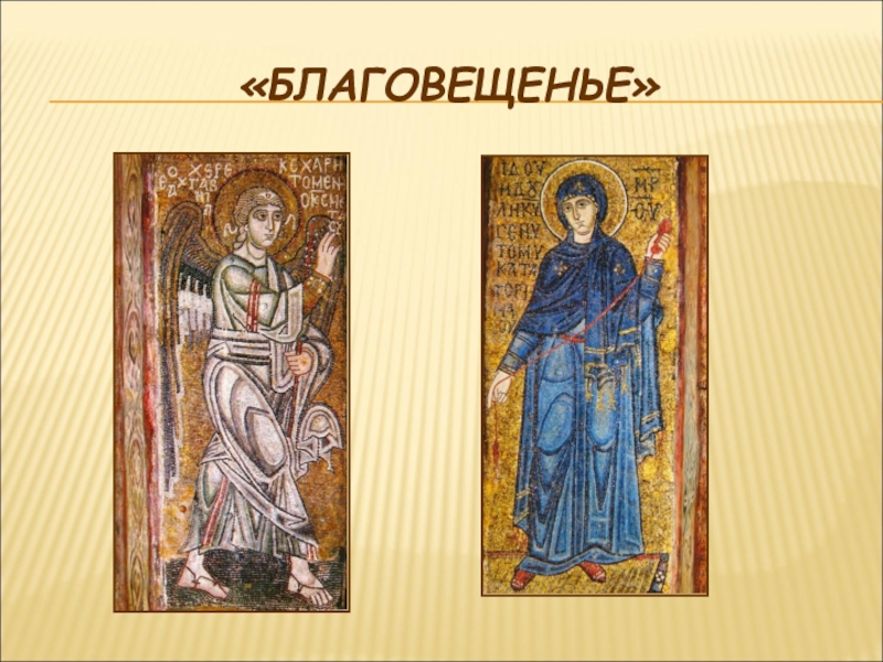 Слайд 37В первоначальной мозаике сохранилась только одна — в голубом одеянии