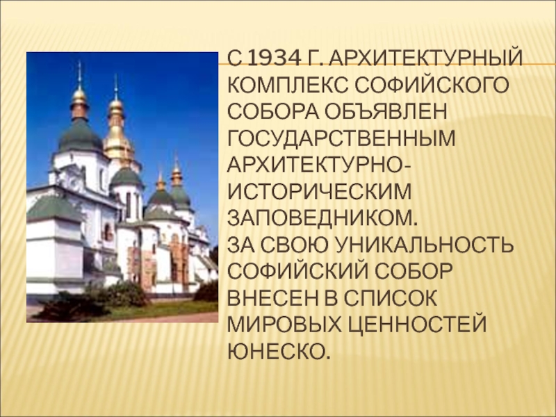 Слайд 53С 1934 г. архитектурный комплекс Софийского собора объявлен государственным архитектурно-историческим