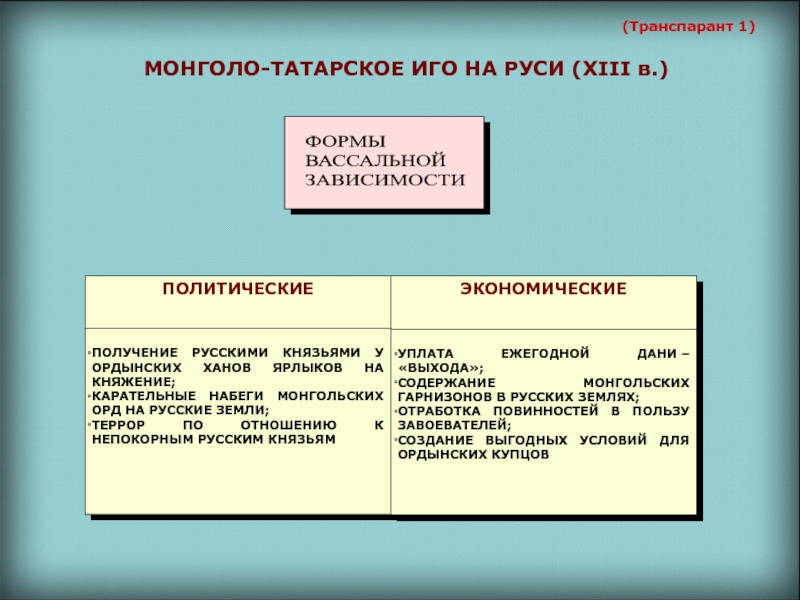 ПОСЛЕДСТВИЯ МОНГОЛО-ТАТАРСКОГО ИГА ДЛЯ РУСИ