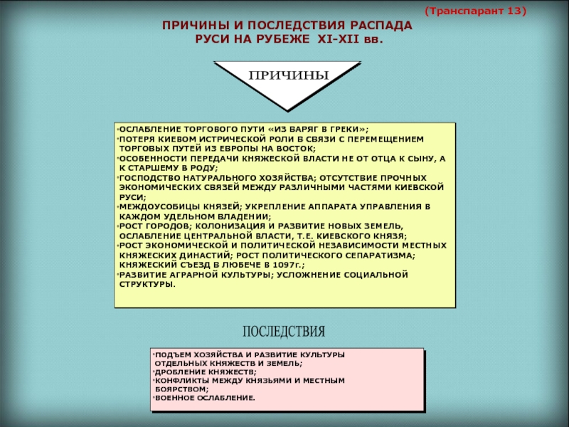 СНИЖЕНИЕ ТЕМПОВ ЭКОНОМИЧЕСКОГО, ПОЛИТИЧЕСКОГО И КУЛЬТУРНОГО РАЗВИТИЯ РУСИ;