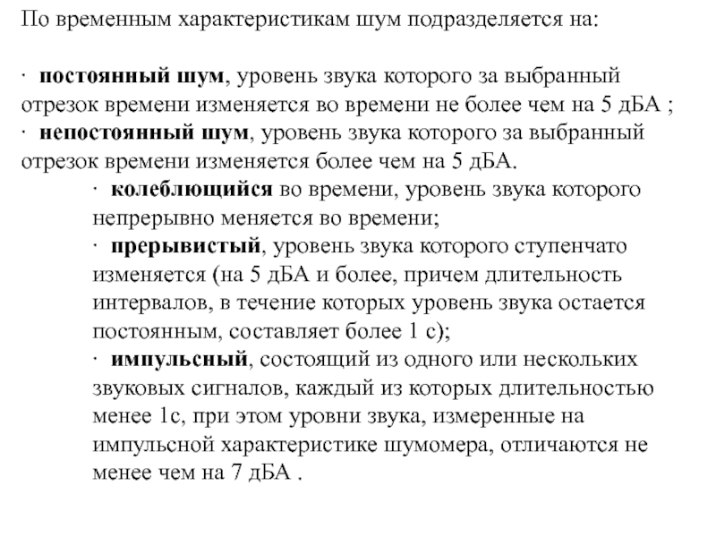 ∙ непостоянный шум, уровень звука которого за выбранный отрезок времени изменяется более чем на 5 дБА.