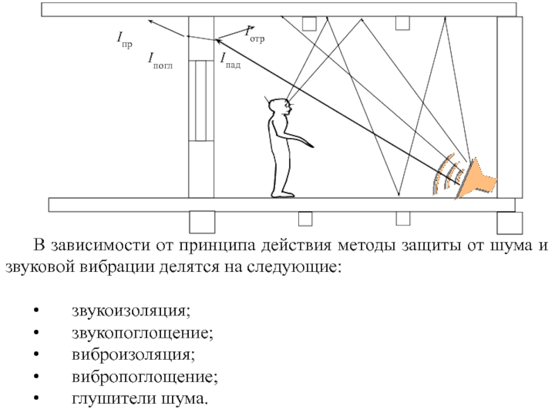 Слайд 23Звукоизоляция - метод защиты от воздушного шума, основанный на отражении