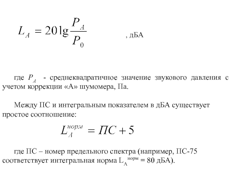 Слайд 18где РА - среднеквадратичное значение звукового давления с учетом коррекции