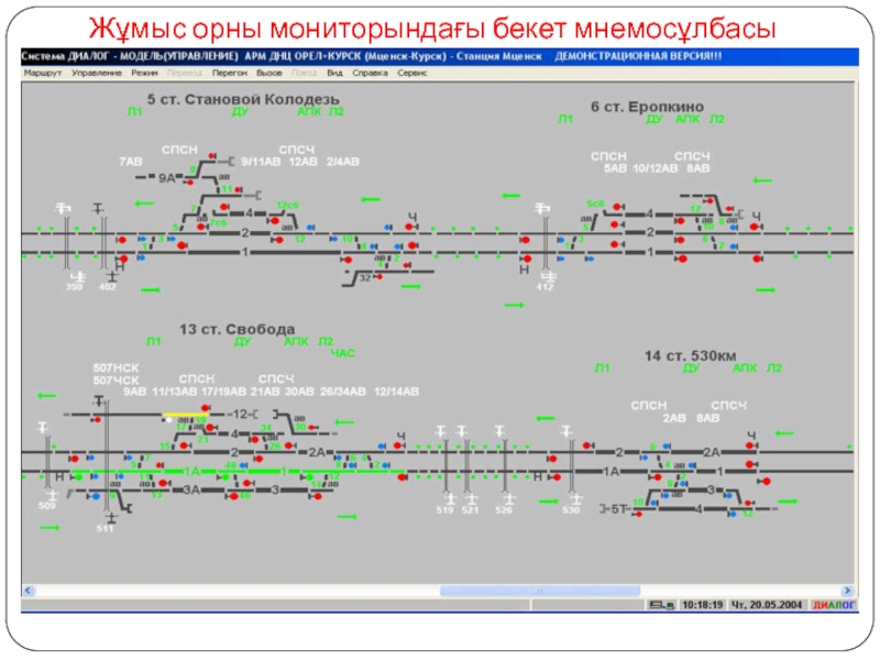 Слайд 7Жұмыс орны мониторындағы бекет мнемосұлбасы