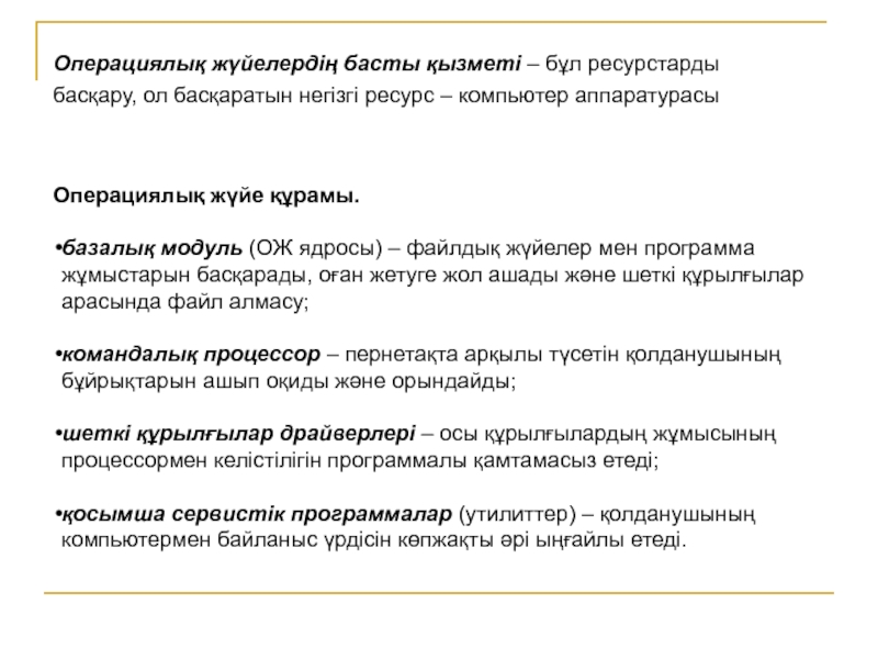Операциялық жүйелердің басты қызметі – бұл ресурстарды басқару, ол басқаратын негізгі ресурс – компьютер аппаратурасы