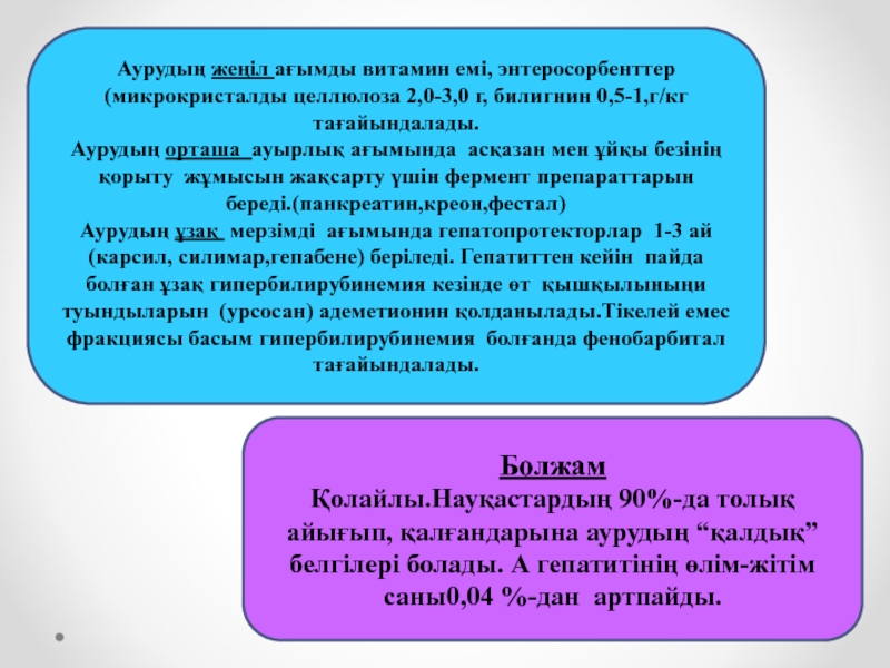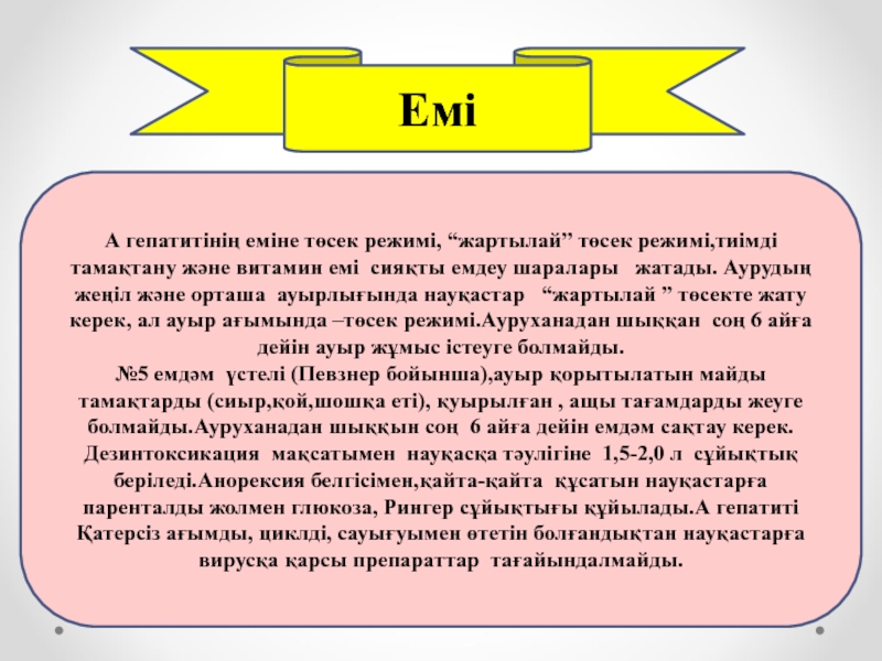 А гепатитінің еміне төсек режимі, “жартылай” төсек режимі,тиімді тамақтану және