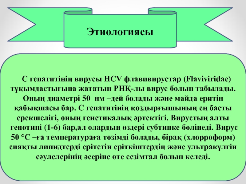 С гепатитінің вирусы HCV флавивирустар (Flaviviridae)тұқымдастығына жататын РНҚ-лы