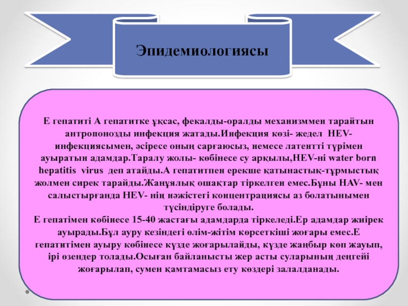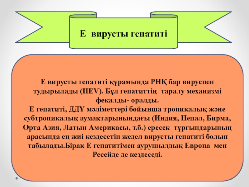 Слайд 47Е гепатиті А гепатитке ұқсас, фекалды-оралды механизммен тарайтын антропонозды инфекция