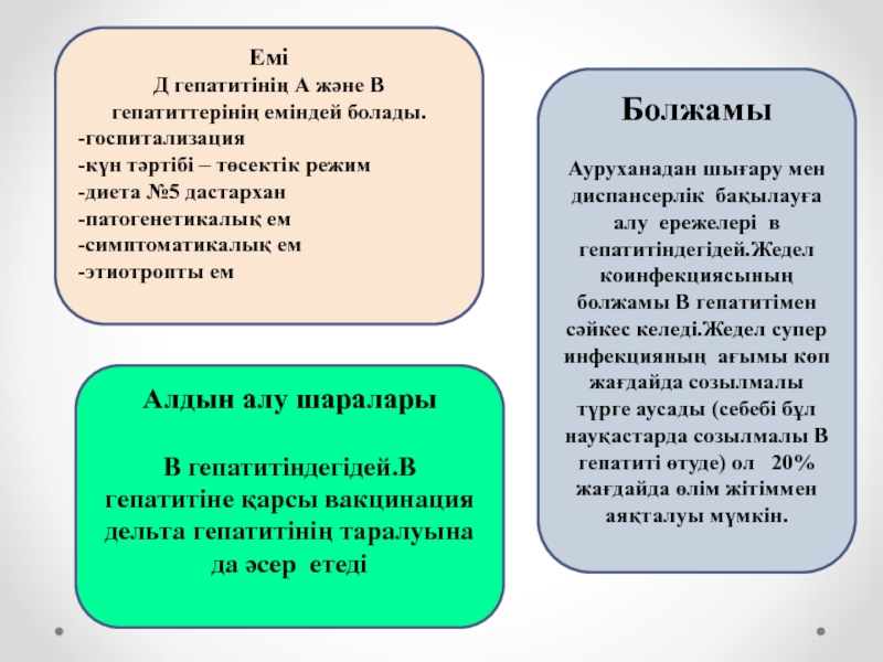 Д гепатитінің А және В гепатиттерінің еміндей болады.