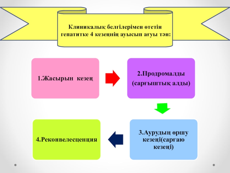Клиникалық белгілерімен өтетін гепатитке 4 кезеңнің ауысып ағуы тән: