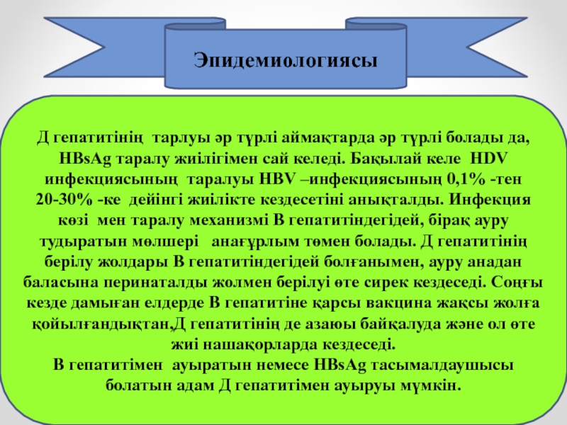 HBsAg таралу жиілігімен сай келеді. Бақылай келе HDV инфекциясының таралуы