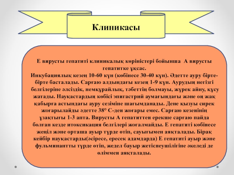 Е вирусты гепатиті клиникалық көріністері бойынша А вирусты гепатитке ұқсас.