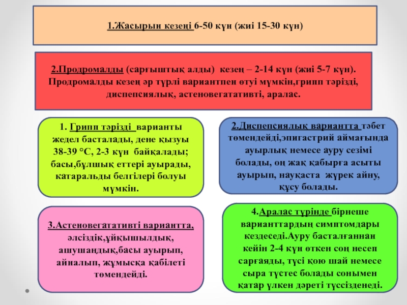 – 2-14 күн (жиі 5-7 күн).Продромалды кезең әр түрлі вариантпен