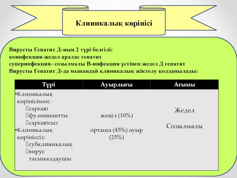 Вирусты Гепатит Д-да мынандай клиникалық жіктелу