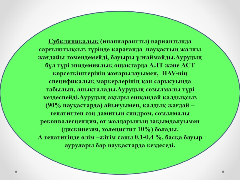Слайд 16Субклиникалық (инаппарантты) вариантында сарғыштықсыз түрінде қарағанда науқастың жалпы жағдайы төмендемейді,