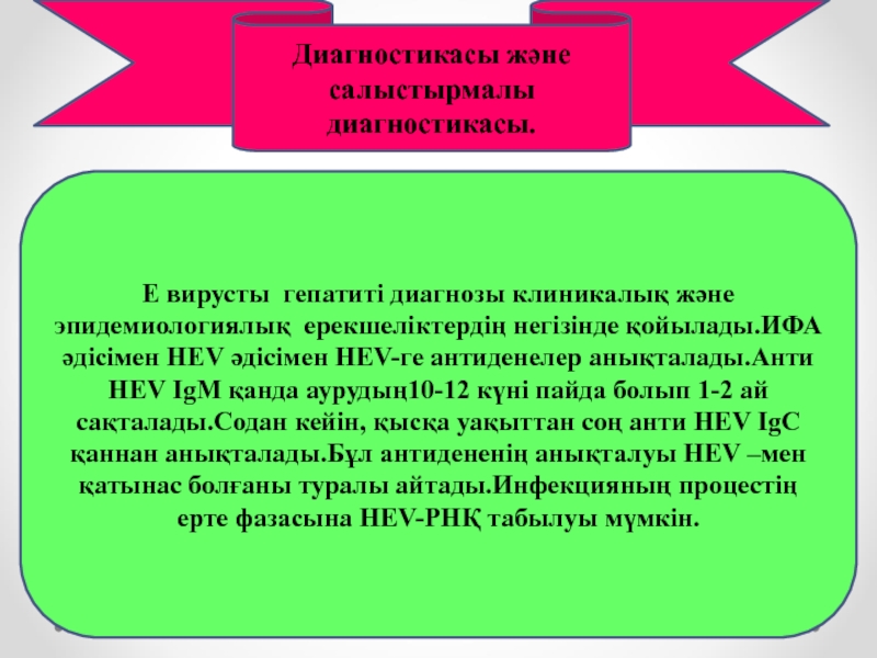 ерекшеліктердің негізінде қойылады.ИФА әдісімен HEV әдісімен HEV-ге антиденелер анықталады.Анти HEV