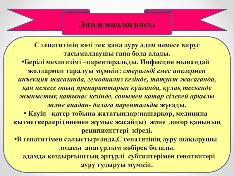 жатады.Инфекция көзі- жедел HEV- инфекциясымен, әсіресе оның сарғаюсыз, немесе латентті