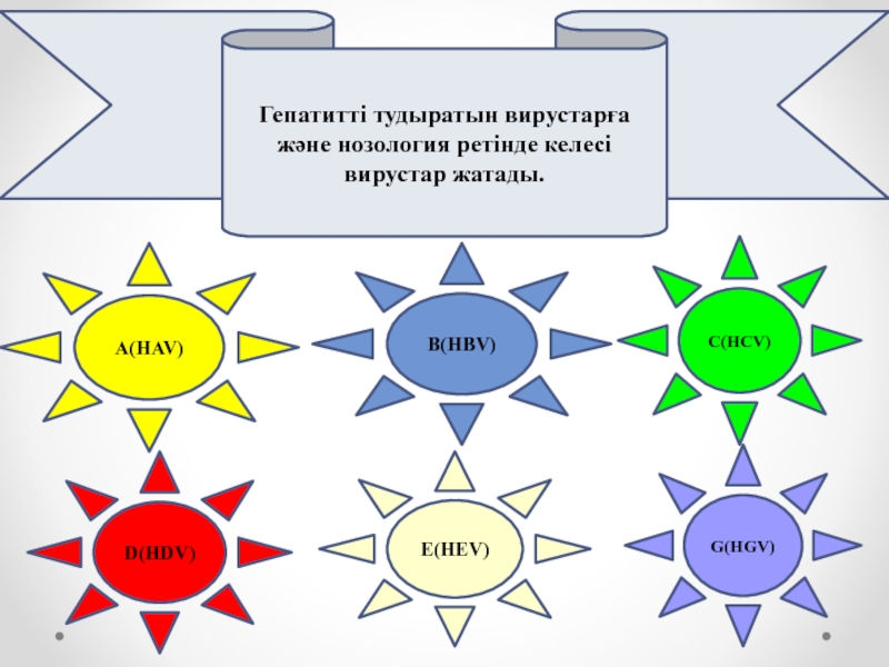 Слайд 5Гепатитті тудыратын вирустарға және нозология ретінде келесі вирустар жатады.