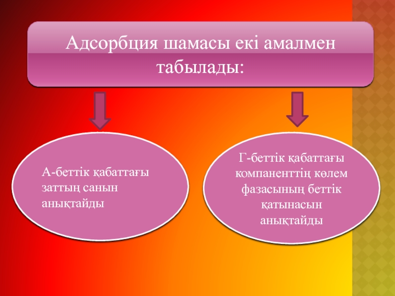Адсорбция шамасы екі амалмен табылады:Г-беттік қабаттағы компаненттің көлем фазасының беттік қатынасын анықтайдыА-беттік қабаттағы заттың санын анықтайды