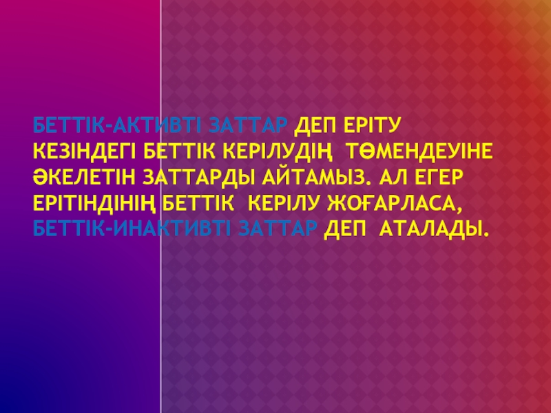 Слайд 2Беттік-активті заттар деп еріту кезіндегі беттік керілудің төмендеуіне әкелетін заттарды