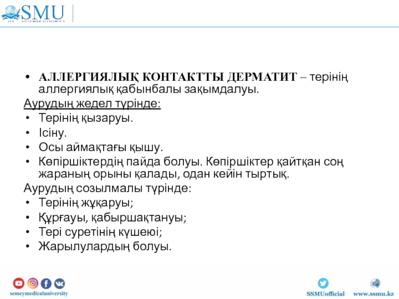 АЛЛЕРГИЯЛЫҚ КОНТАКТТЫ ДЕРМАТИТ – терінің аллергиялық қабынбалы зақымдалуы.