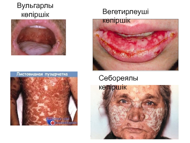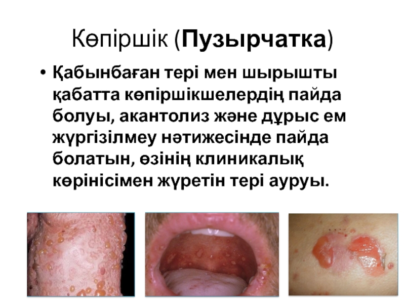 Слайд 57Ірі, кернеулі көпіршіктермен көп немесе аз генерализденген бөртпелермен болатын тері