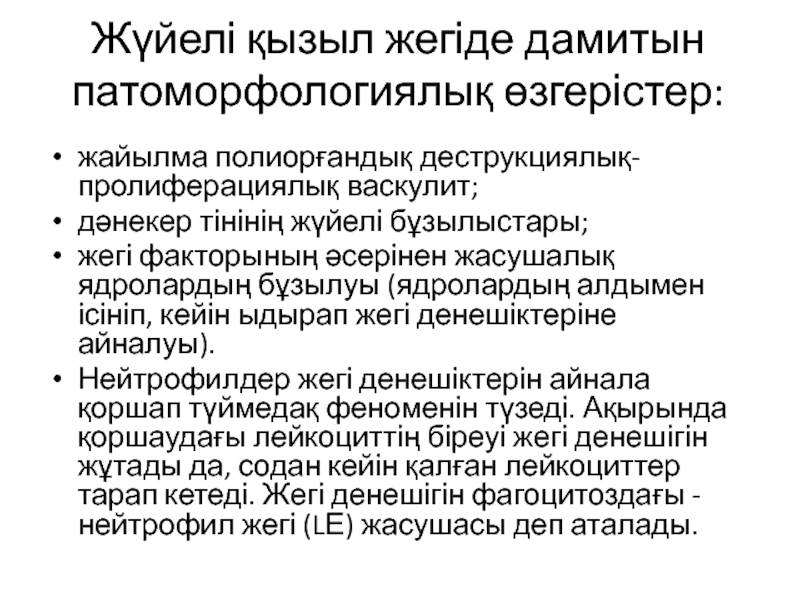 Слайд 45Жүйелі қызыл жегіде дамитын патоморфологиялық өзгерістер: