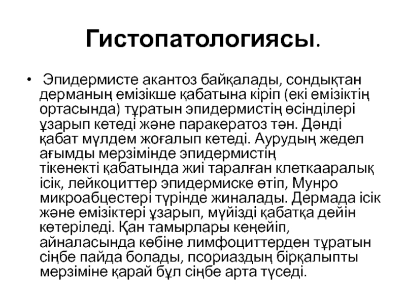 Слайд 65Аурудың дамуының ерте кезеңінде дерманың емізікшелерінде нейтрофильдердің (микроабцесстер), нейтрофильді фрагменттердің,