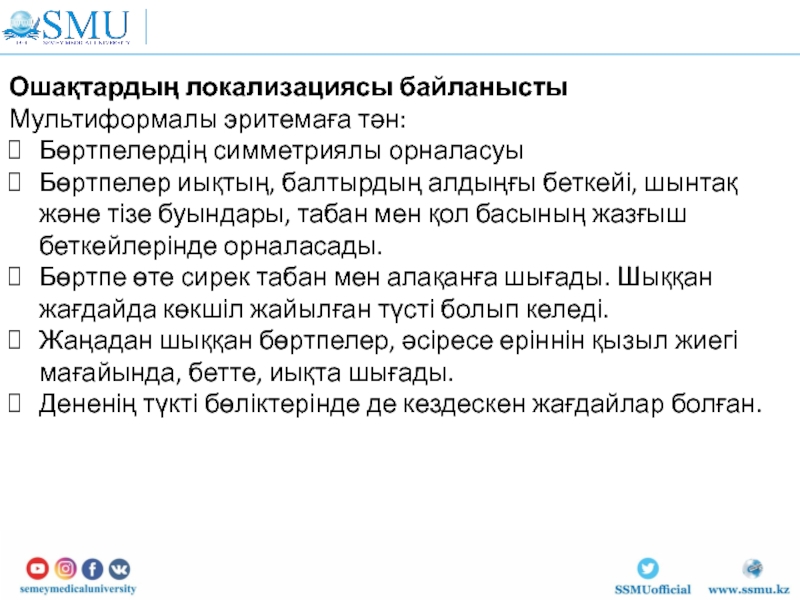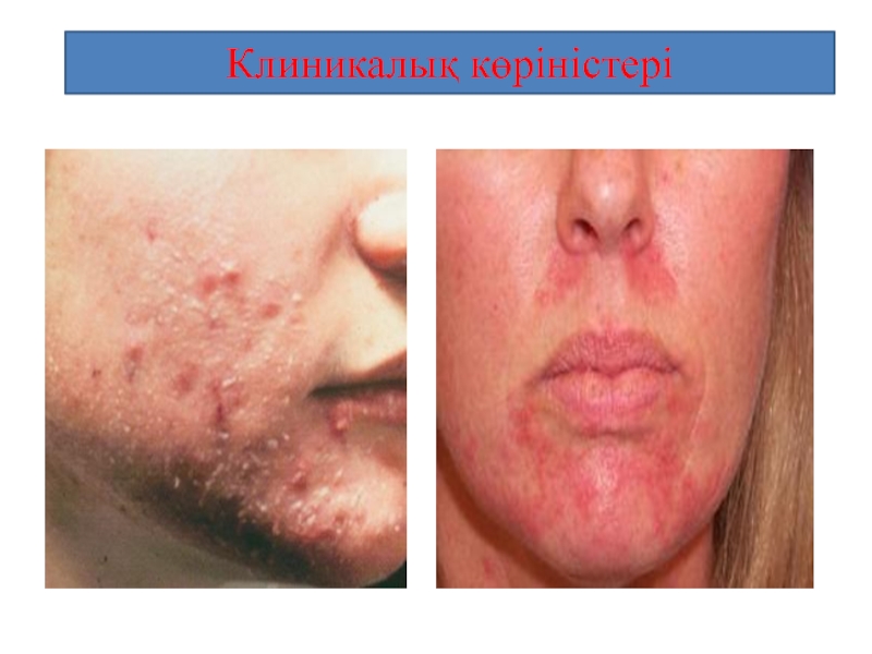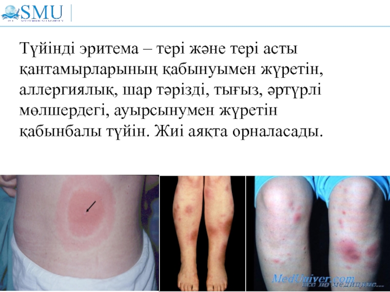 Слайд 15Мультиформалы эритема – терінің және шырышты қабаттың мультиформалы бөртпелердің шығуымен,