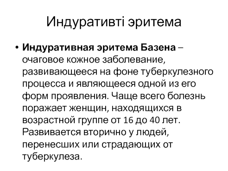 Индуративная эритема Базена – очаговое кожное заболевание, развивающееся на фоне