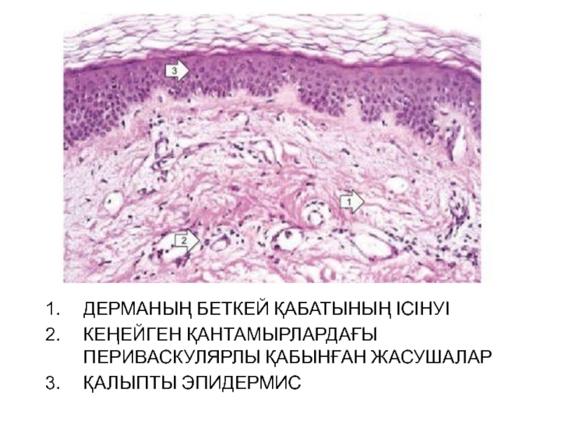 Слайд 5ДЕРМАНЫҢ БЕТКЕЙ ҚАБАТЫНЫҢ ІСІНУІ