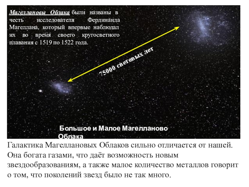Магеллановы Облака были названы в честь исследователя Фердинанда Магеллана, который впервые наблюдал их во время своего кругосветного плавания с 1519 по 1522 года.