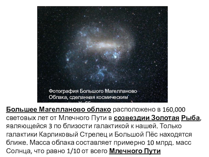 Раньше ученые думали, что Малое Магелланово облако - часть Млечного Пути, но недавно выяснилось, что они никак гравитационно не связаны, просто периодически проходят друг рядом с другом, а потом продолжают свой путь дальше.