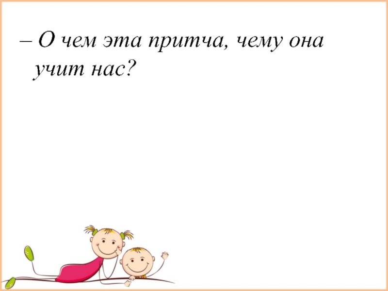 Слайд 7– О чем эта притча, чему она учит нас?