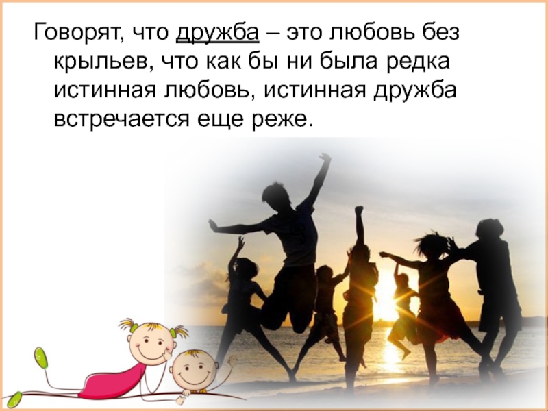Слайд 2Говорят, что дружба – это любовь без крыльев, что как