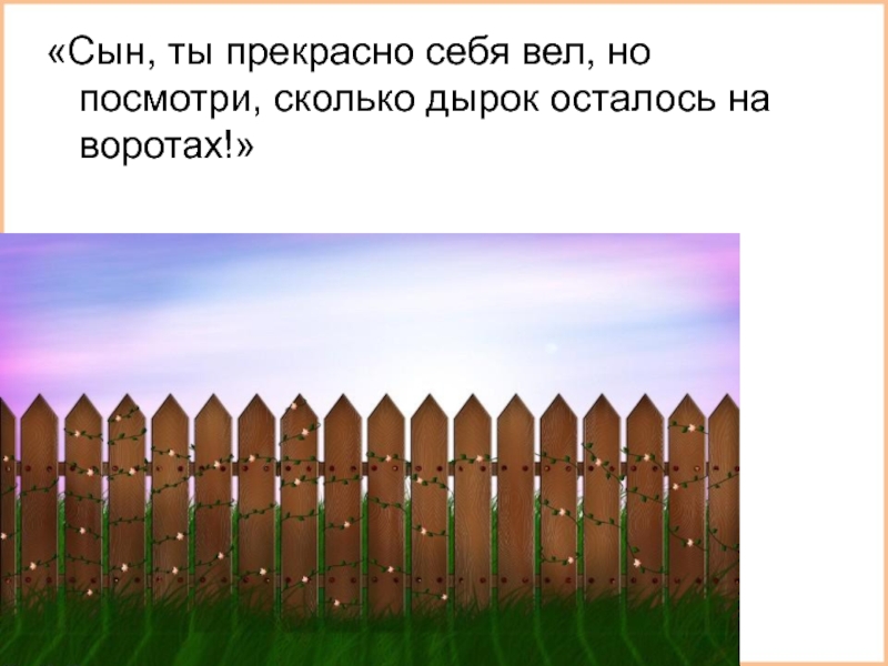 Слайд 19«Сын, ты прекрасно себя вел, но посмотри, сколько дырок осталось